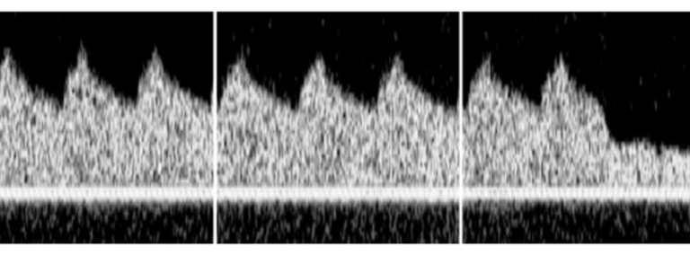 Using the Doppler Flow Velocity System (DFVS), the researchers scanned the surface of the eye with a high-frequency Doppler probe, near the temporal cantus of the eye and were able to reproducibly assess blood flow velocity of the ophthalmic artery, as shown in Figure 1. The researchers monitored Doppler indices like peak systolic velocity, end-diastolic velocity, and the resistivity and pulsatility indices that can further serve as quantitative biomarkers for ocular vascular health.