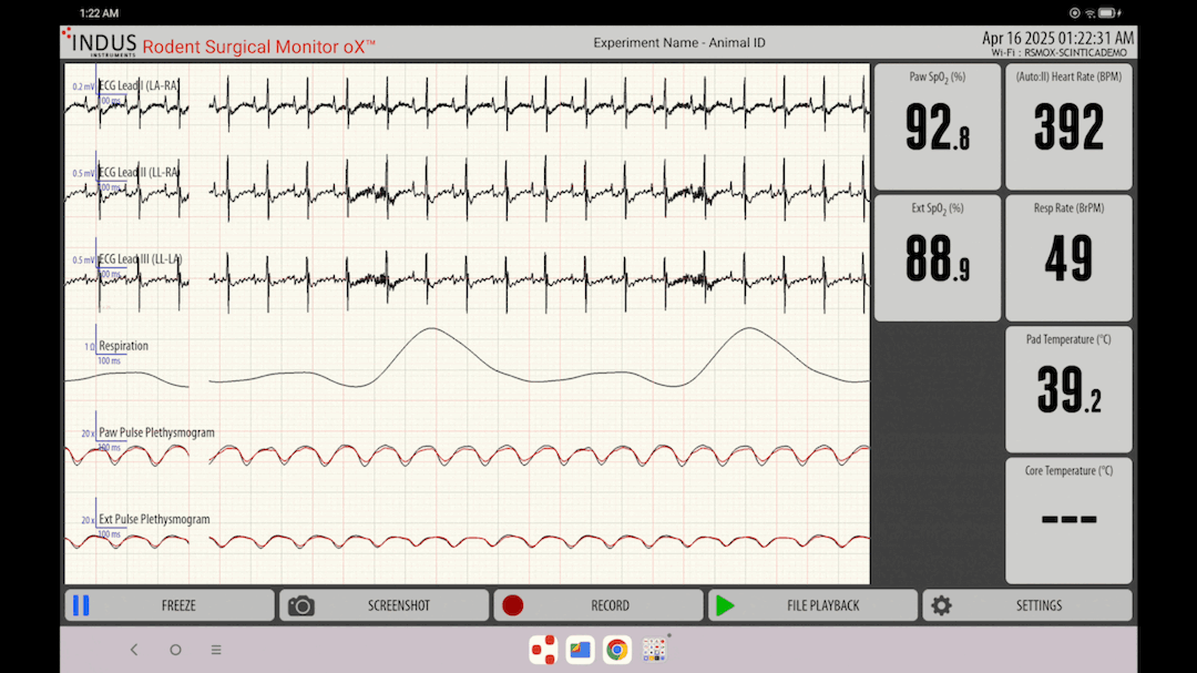 The Rodent Surgical Monitor (RSM+) combines real-time, noninvasive physiological vital signs monitoring and surgical warming in a platform designed for mice, rats, and other similarly sized animals. Physiological signals can be directly integrated into the DFVS system for seamless data collection.