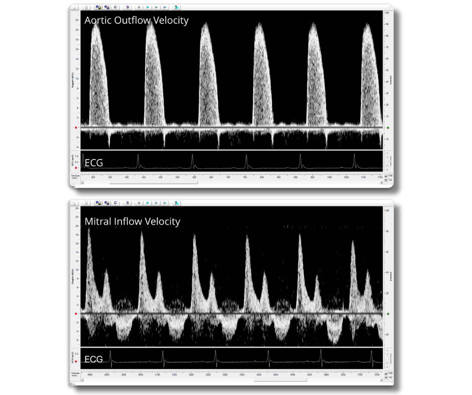 - Aortic outflow and mitral inflow velocity