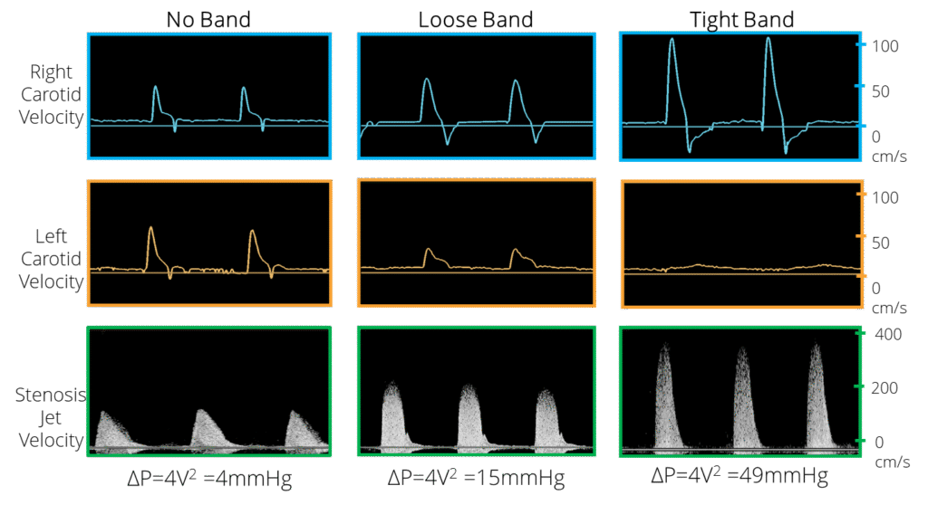 - Ratio of right to left carotid peak velocity, stenotic jet velocity-estimation of pressure gradient across aortic arch